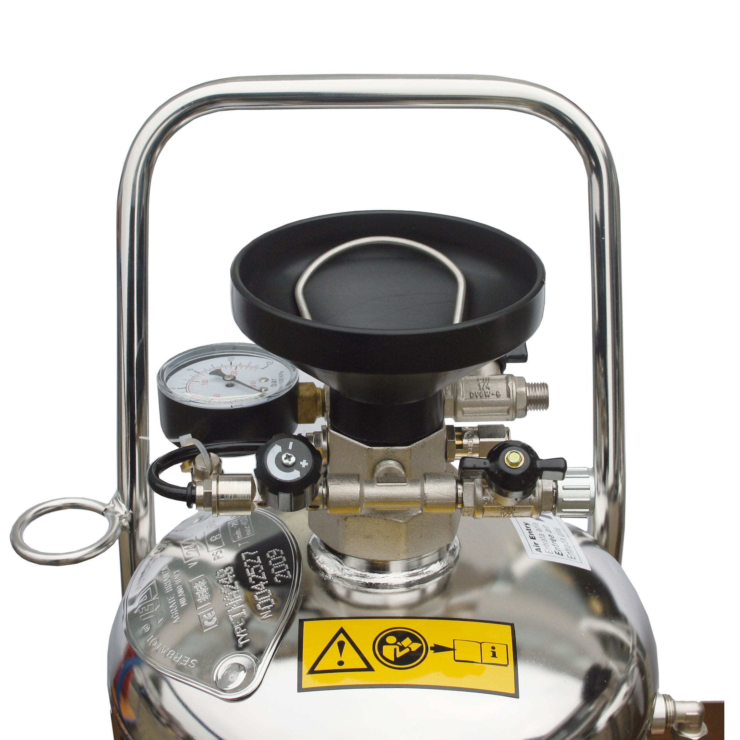 1/4″M – connectie voor aansluiting op de persluchttoevoer. (Max 80 bar)